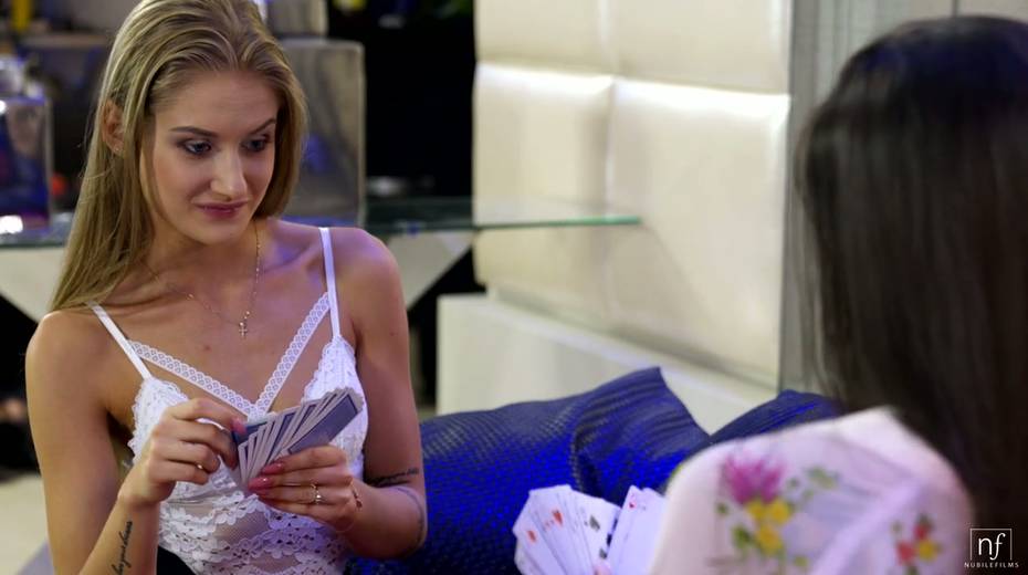 Two voluptuous girls are playing strip poker and make live like there's no tomorrow