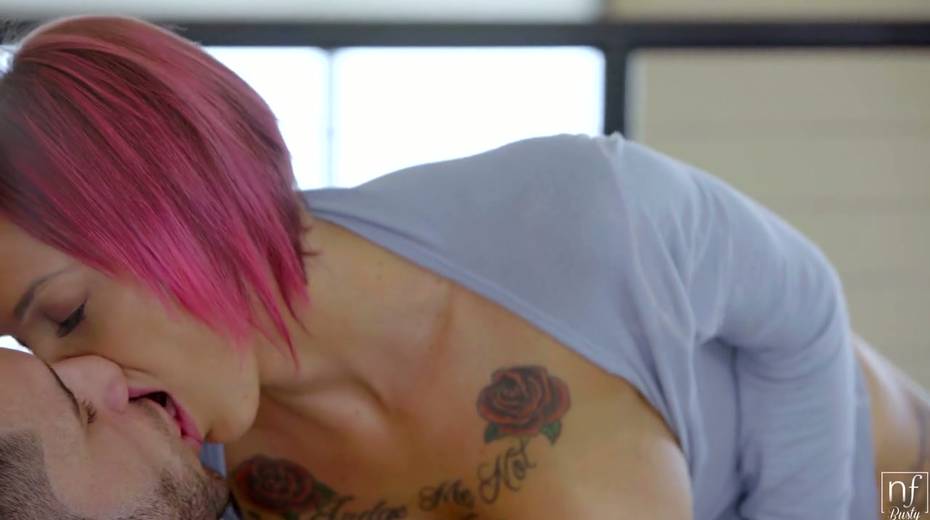 Tattooed pink haired babe Anna Bell Peaks gives erotic massage before steamy sex