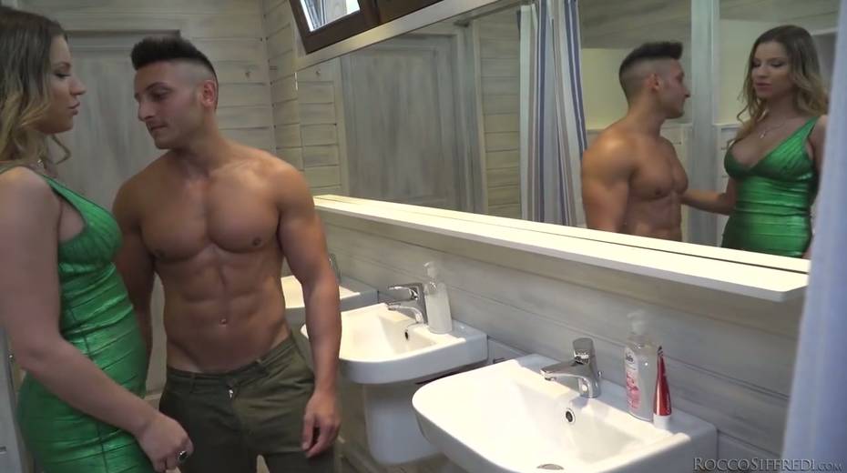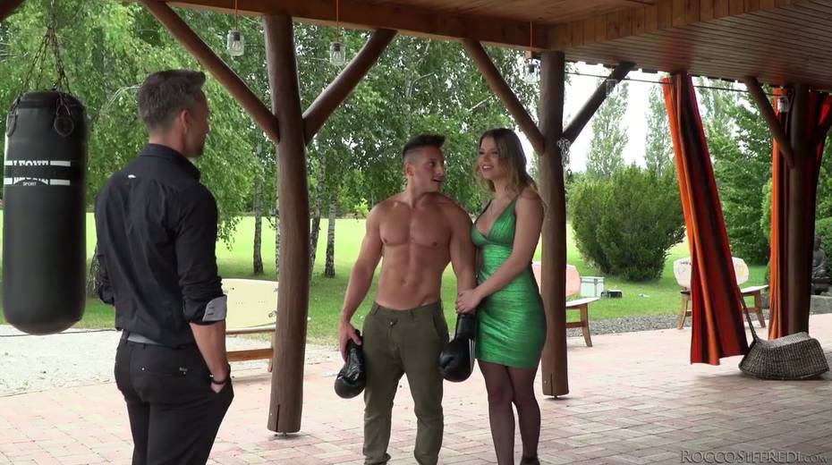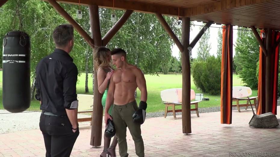 Whorish busty chick Angel Rivas is fucked by two handsome athletic dudes