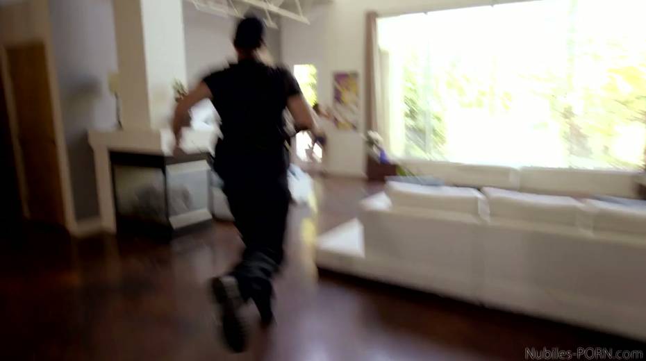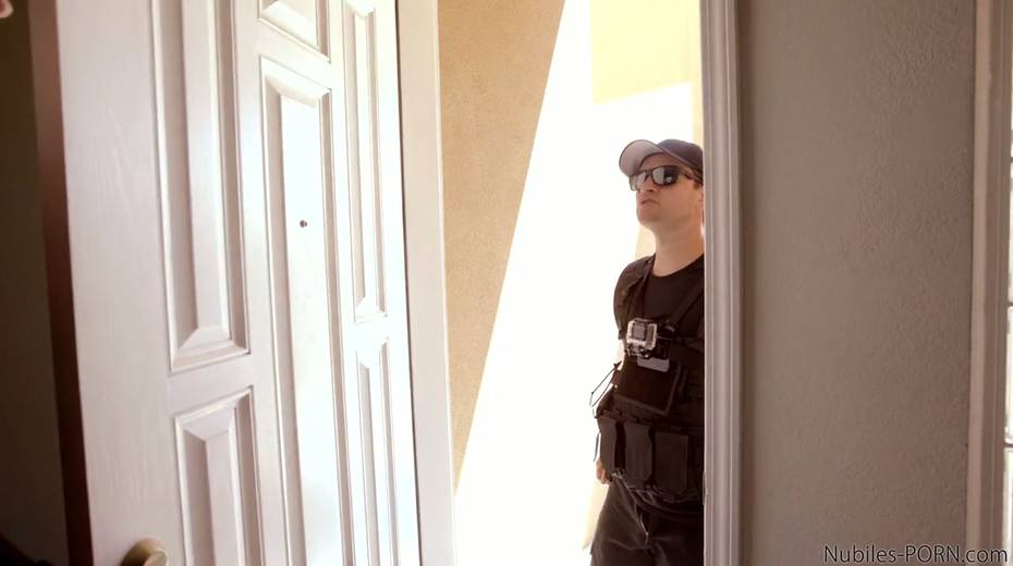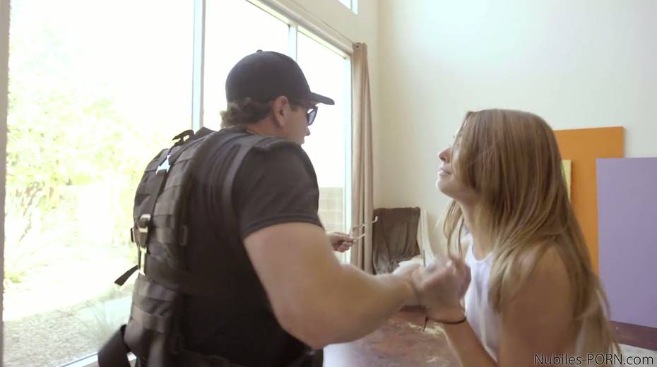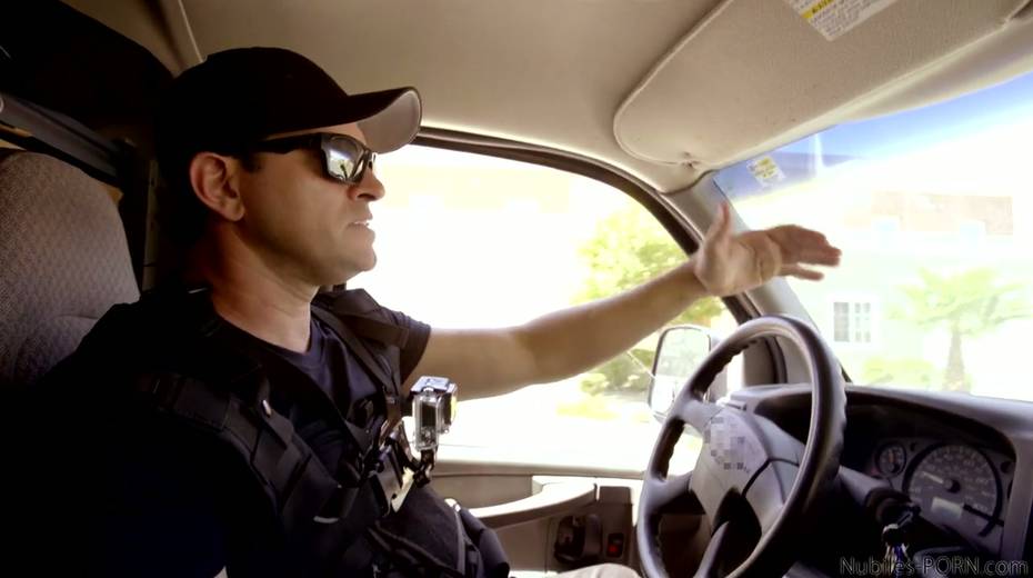 Arrested chick Kirsten Lee gives a blowjob to one dude in police uniform