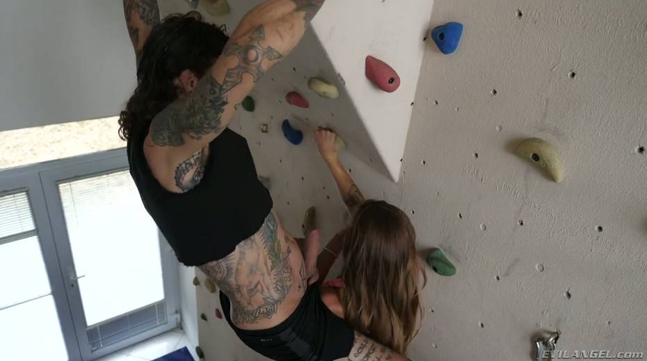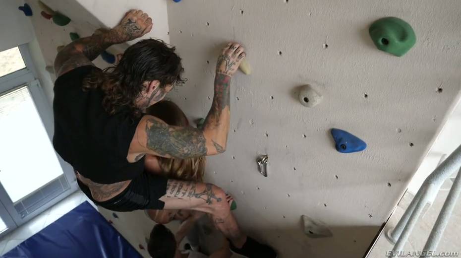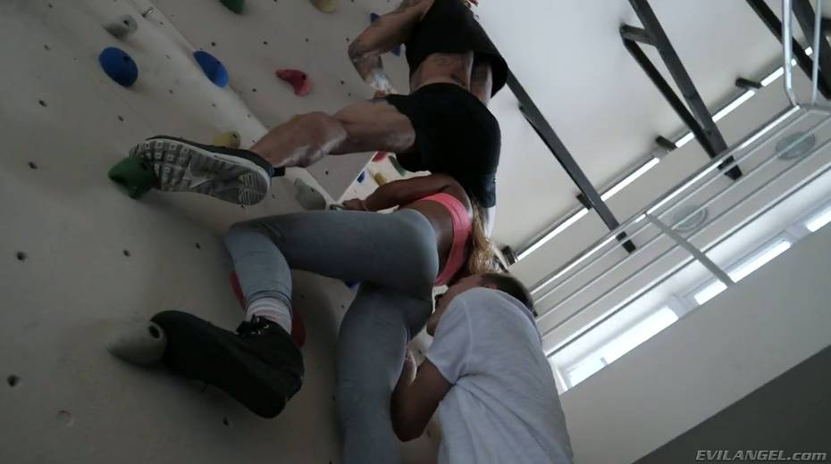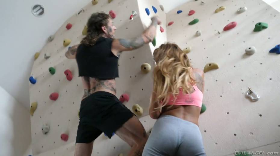 Two climbers enjoy fucking anus and pussy of sexy fitness babe Silvia Dellai