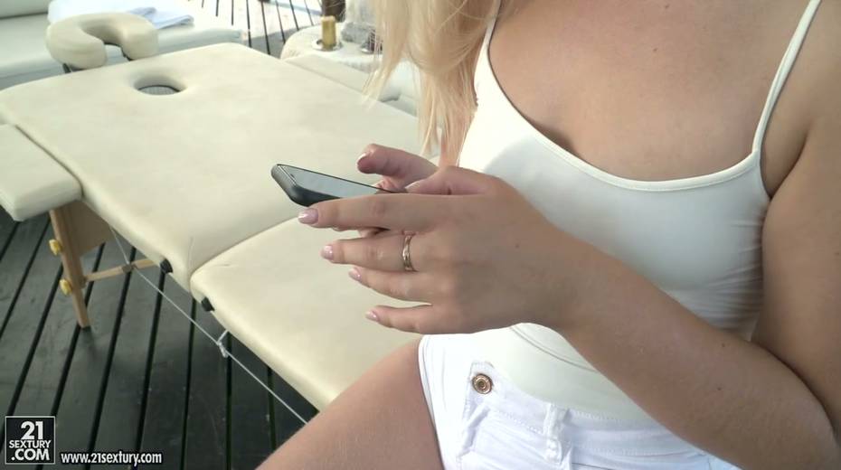 Alluring blond masseuse Selvaggia gives a massage to her first client