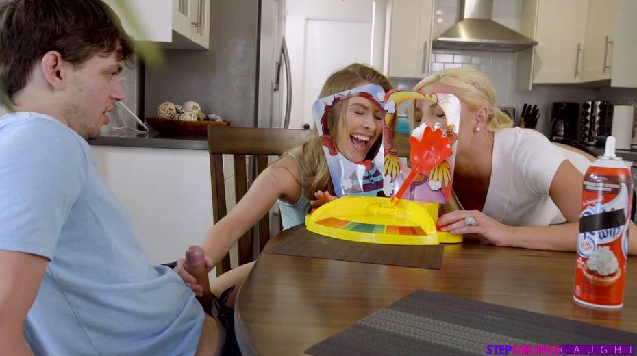 Funny Cake Splat game ends up with crazy and passionate stepsex