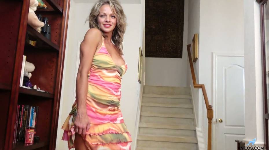 Leggy chick Cj Bridge is masturbating pussy spreading legs wide open
