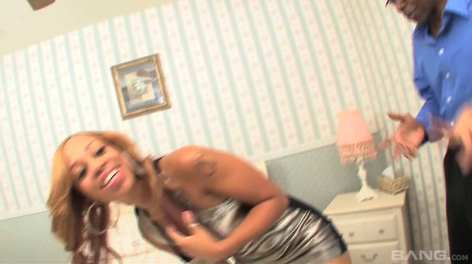 Black stud fucks ebony chick Melrose Foxxx and cums on her juicy boobies