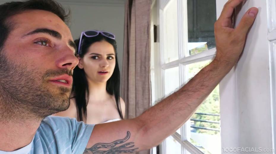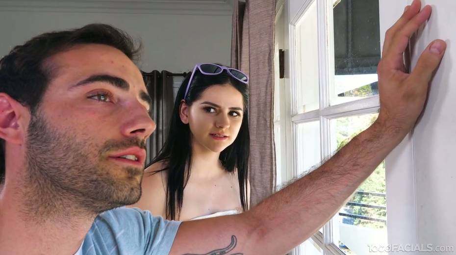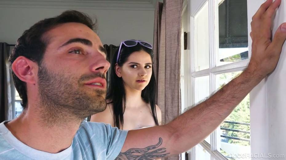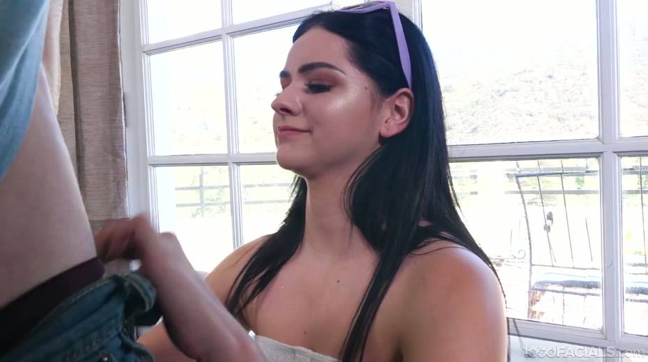 Pretty teen Violet Rain gives a great blowjob to her boyfriend and gets facial