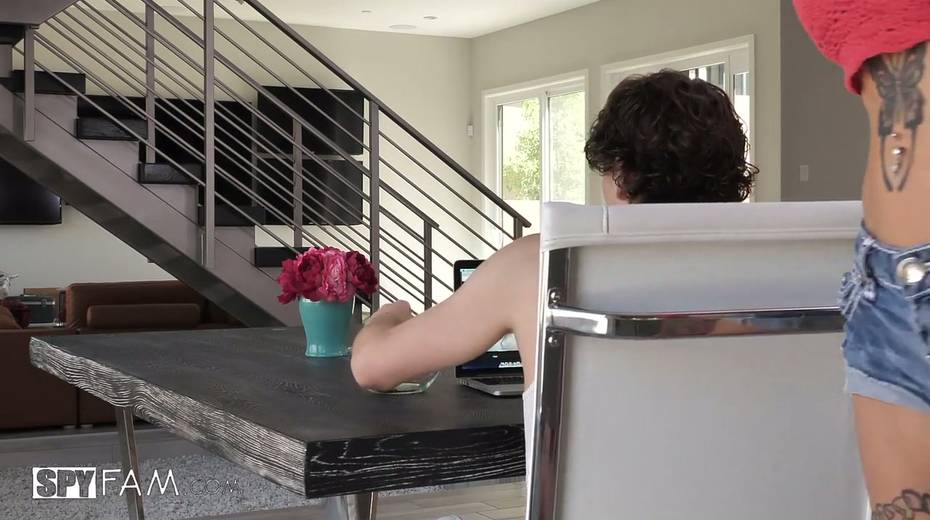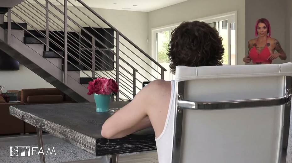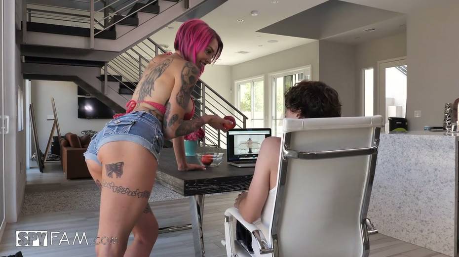 Tattooed Anna Bell Peaks caught her stepbrother masturbating in the living room