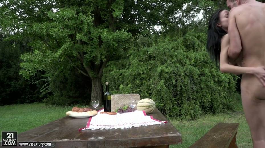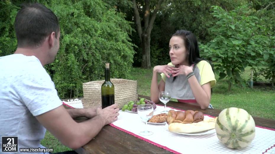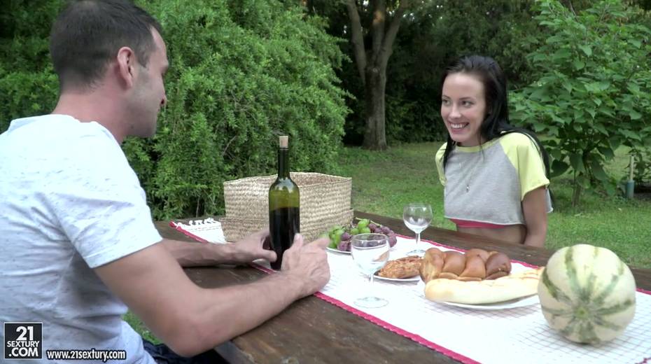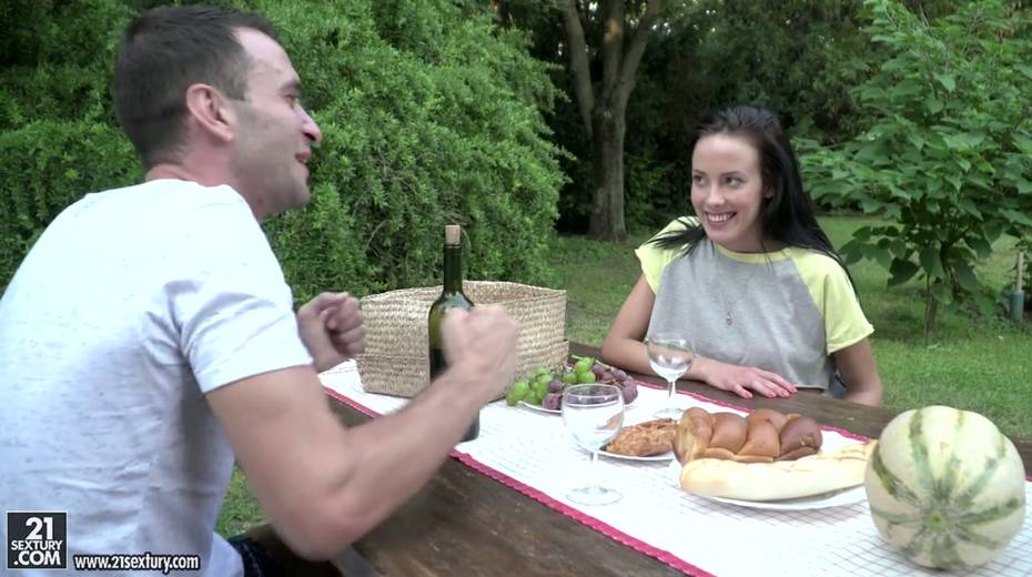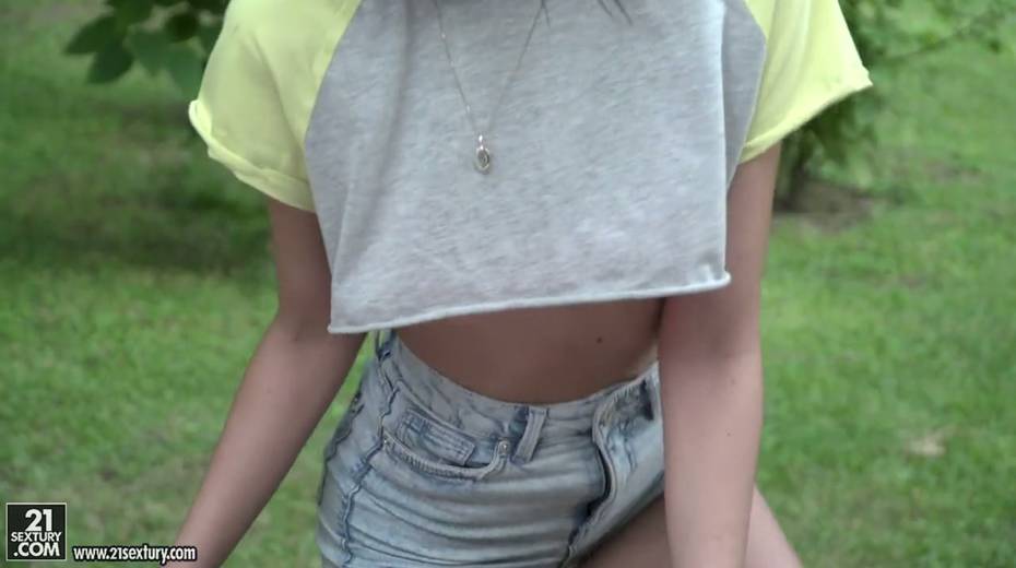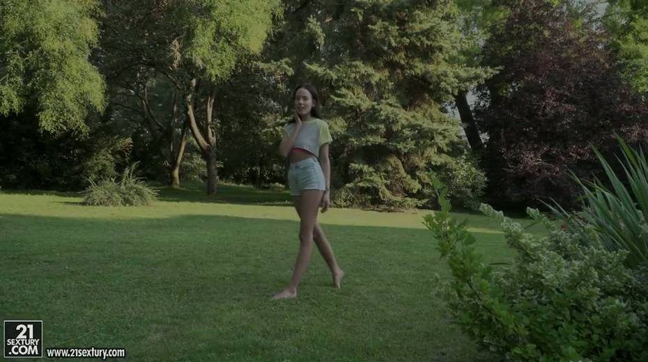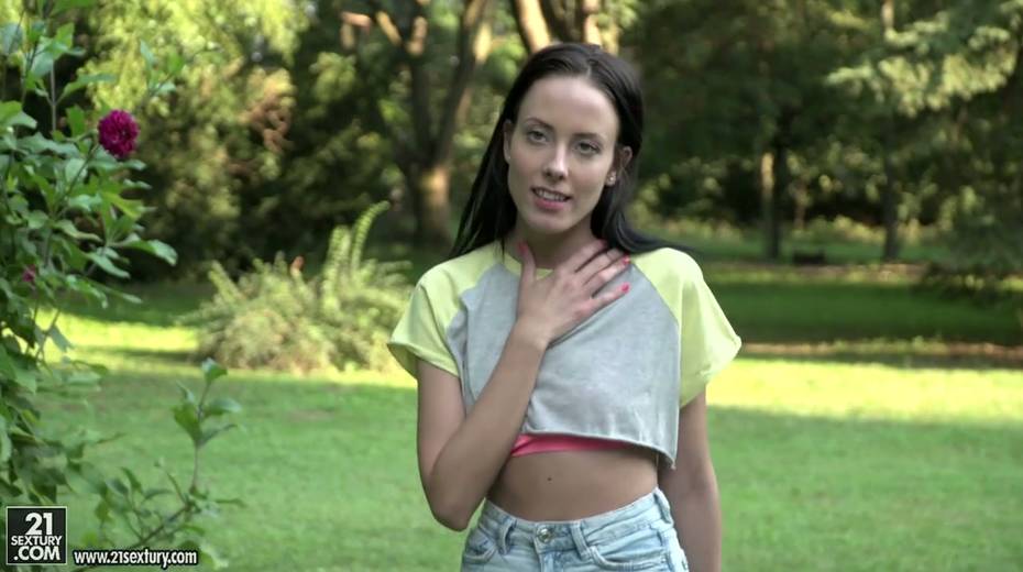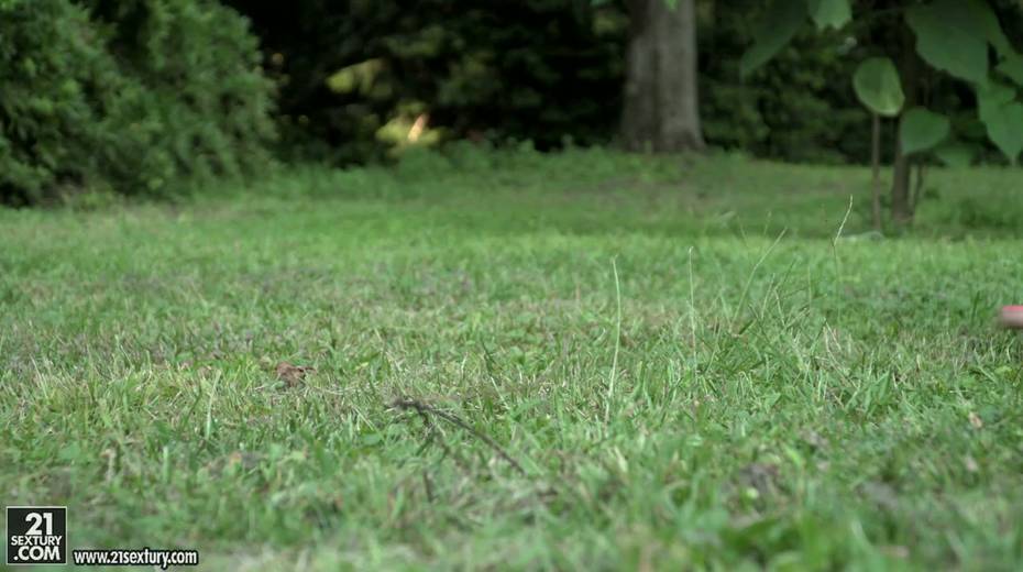 Small tittied brunette Lexi Layo is sucking hard dick in the garden