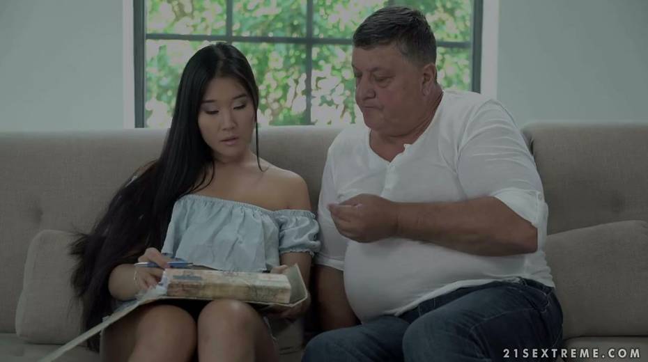 Sultry Asian babe Katana hooks up with one ugly fat old dude