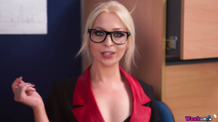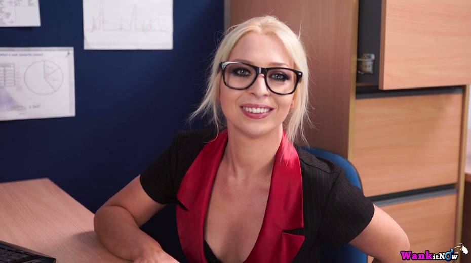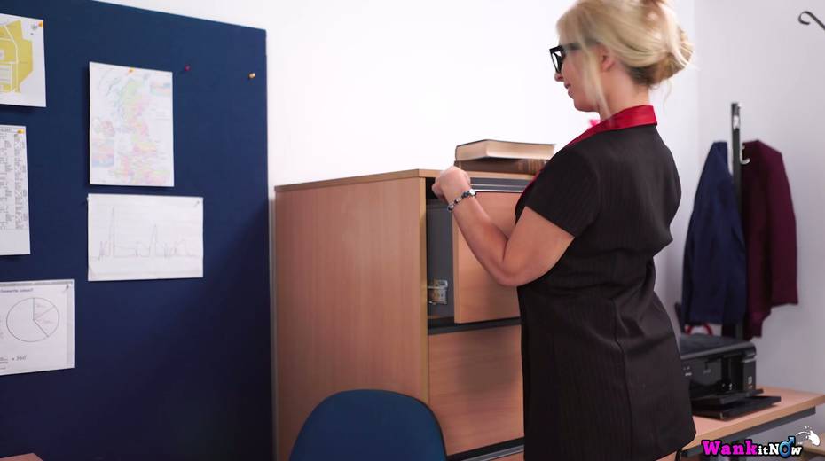 Secretary in glasses Jamie T is dildo fucking her insatiable pussy in the office