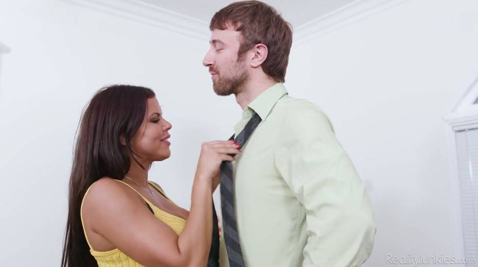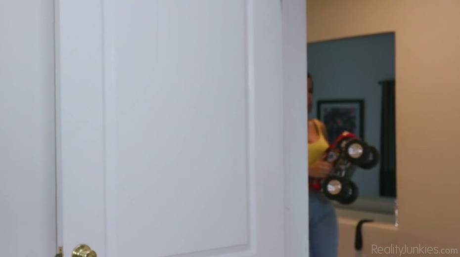 Big bottomed and bosomy babysitter Diamond Kitty rides a dick after a steamy blowjob