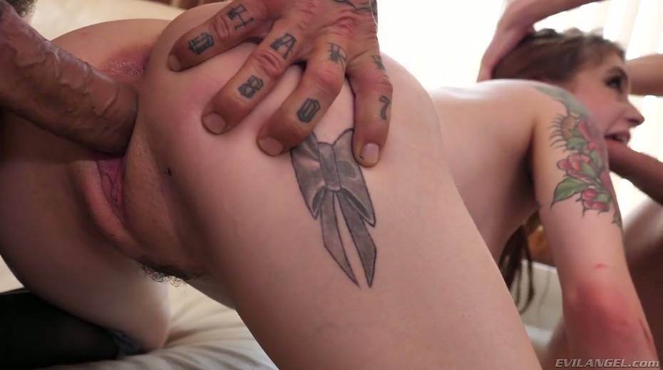 Seductive tattooed chick Anna De Ville gets double penetrated