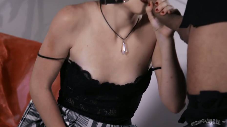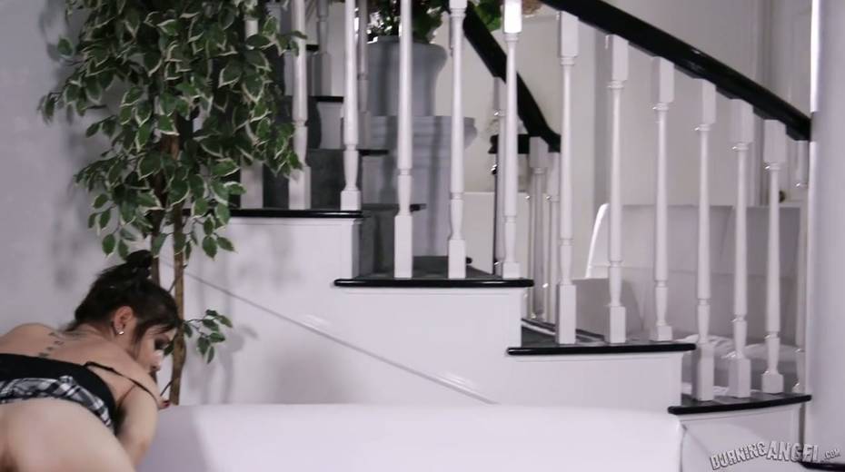 Goth chick Rosalyn Sphinx masturbates pussy before a steamy sex with her boyfriend