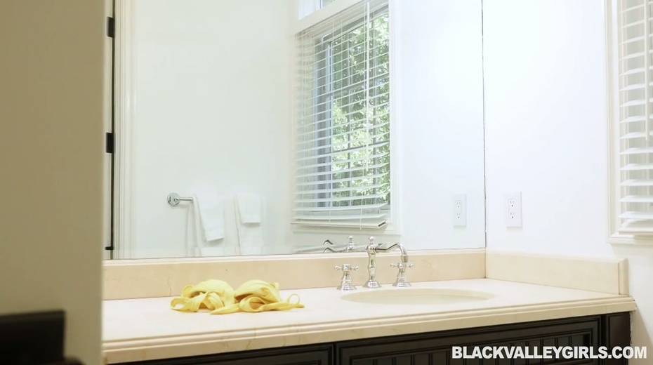Nude ebony babe Lala Ivey is swimming in the pool before a crazy sex with her white neighbor