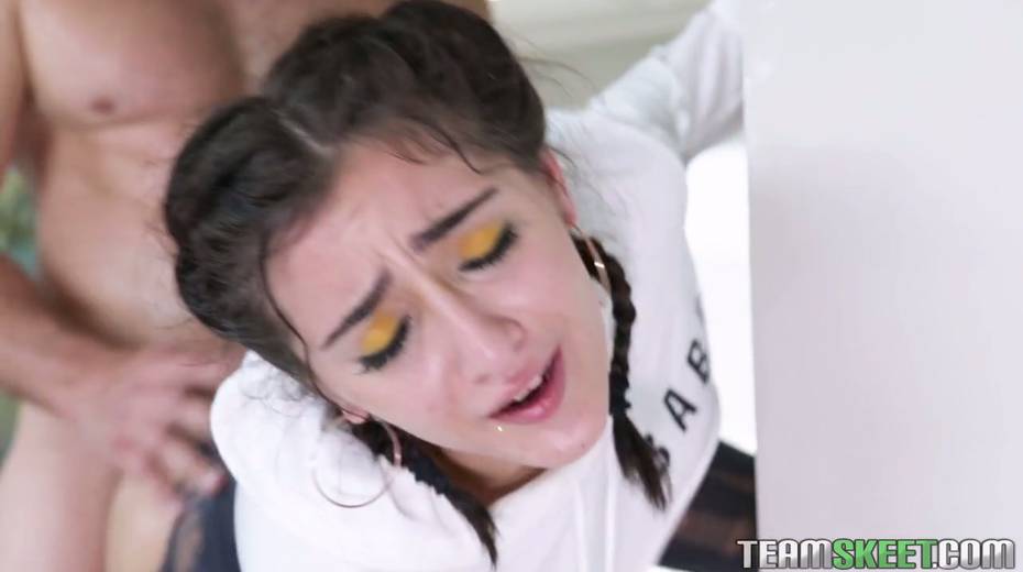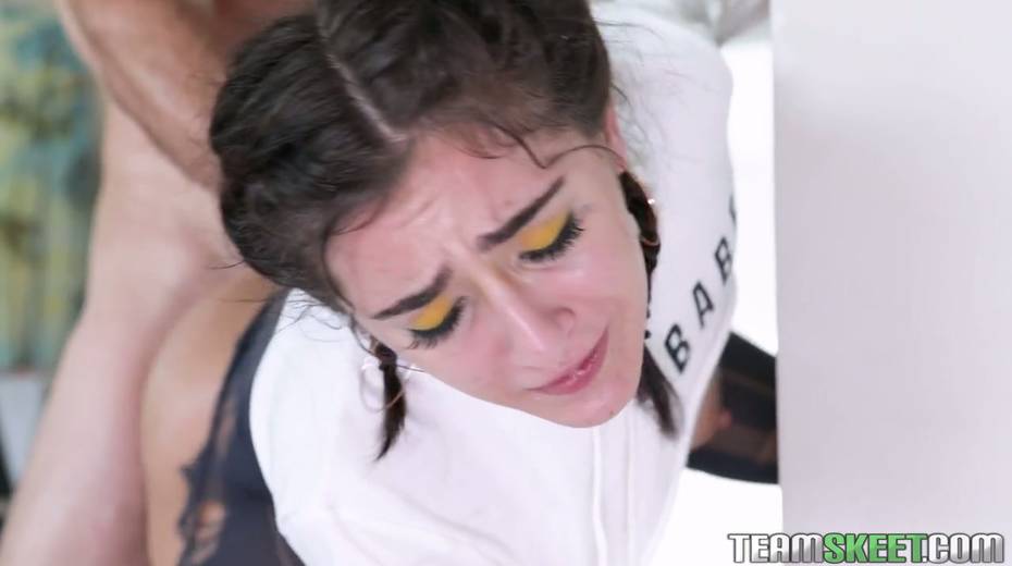 Curvy bitch in ripped pantyhose Jezebeth rides a hard dick face to face and reverse