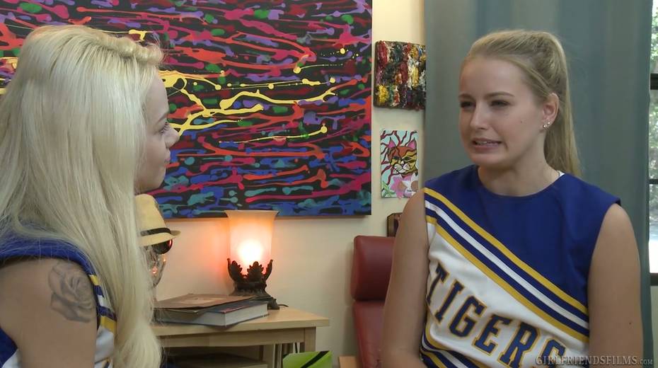 Two lovely cheerleaders enjoys licking each others yummy pussies