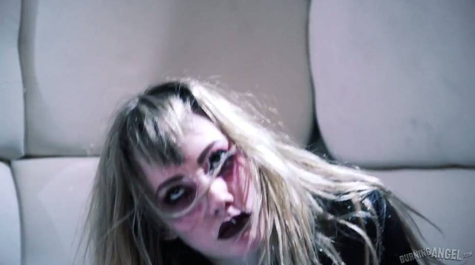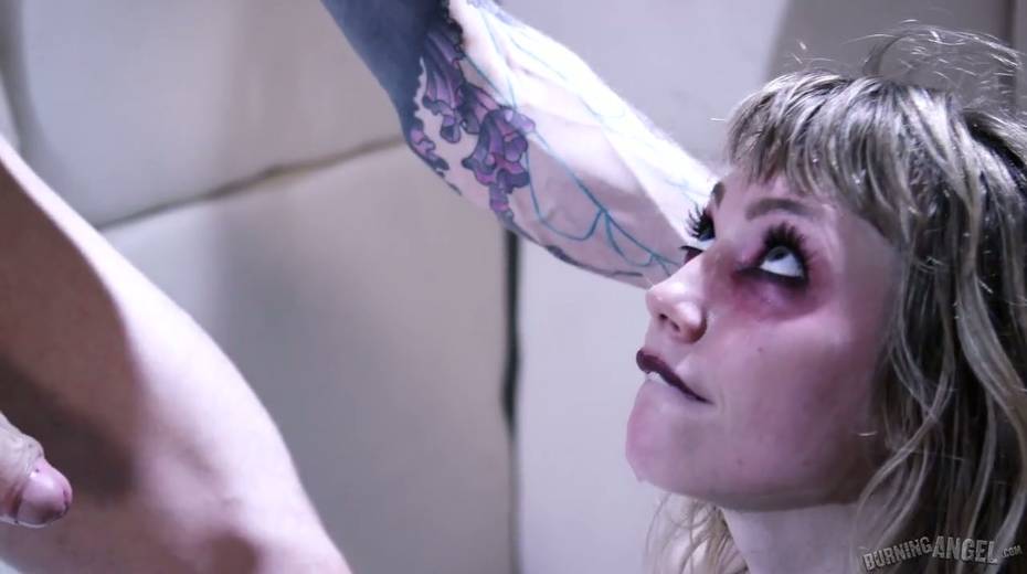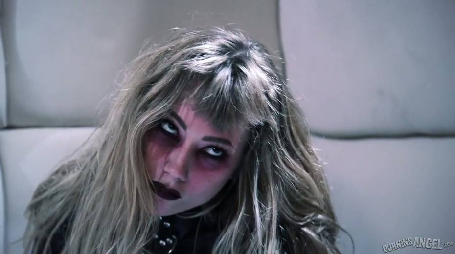 Wild zombie whore Ivy Wolfe enjoys drinking cum from a glass