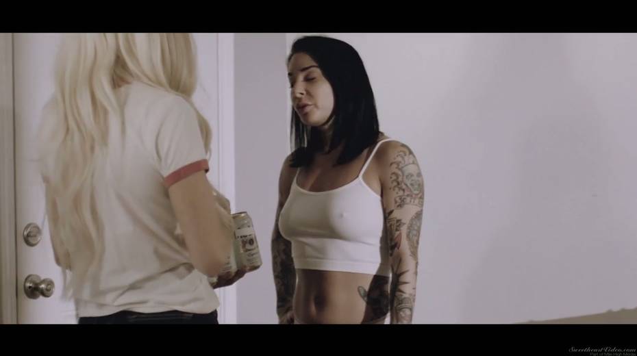 Nerdy blonde in glasses Elsa Jean is fucked by tattooed sassy chick Joanna Angel