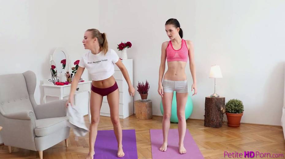 Brunette Anie Darling is licking tasty looking pussy after a hot yoga workout