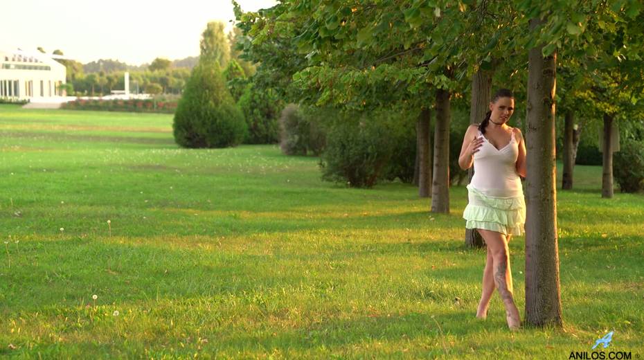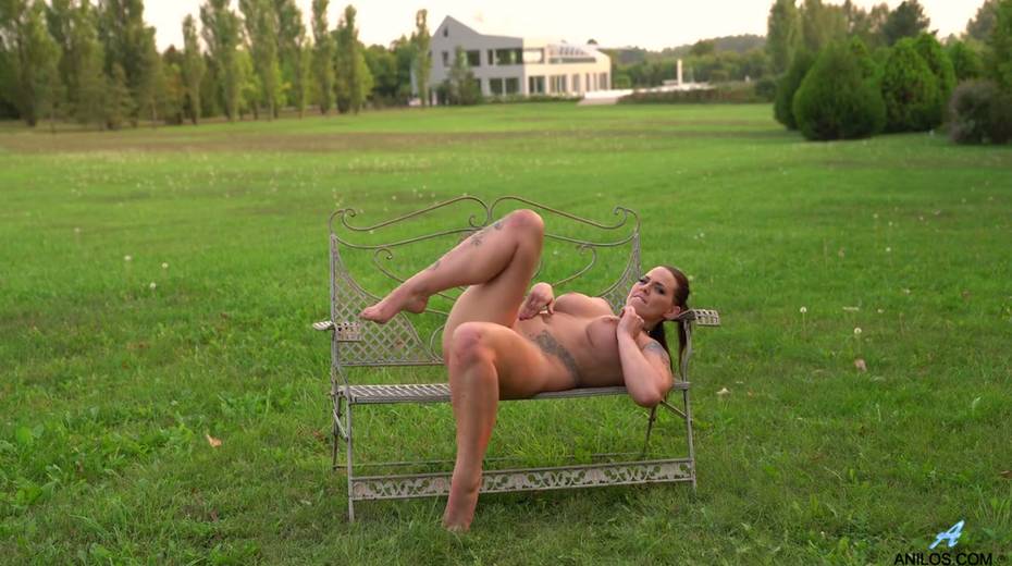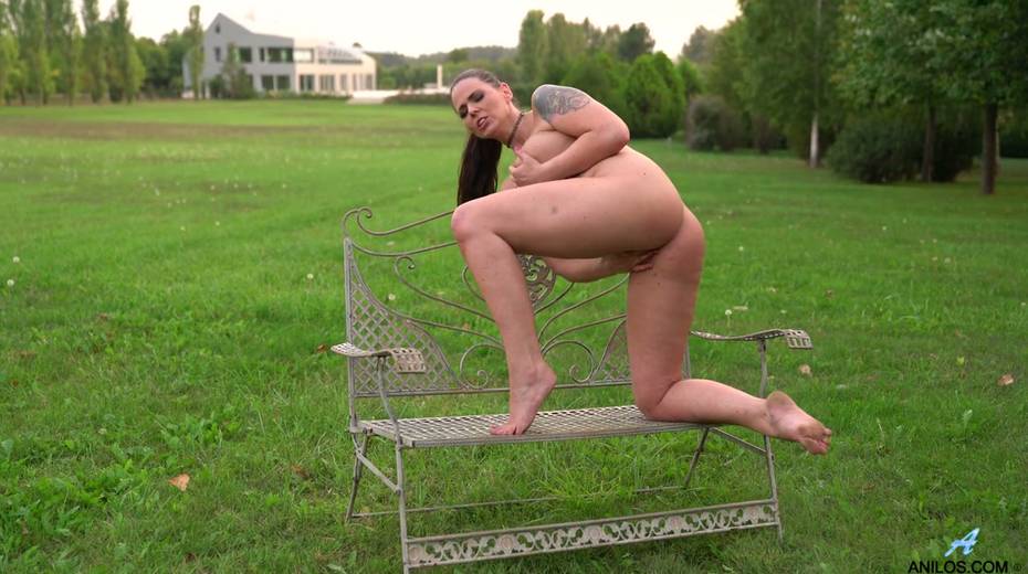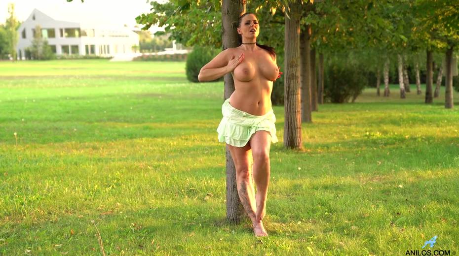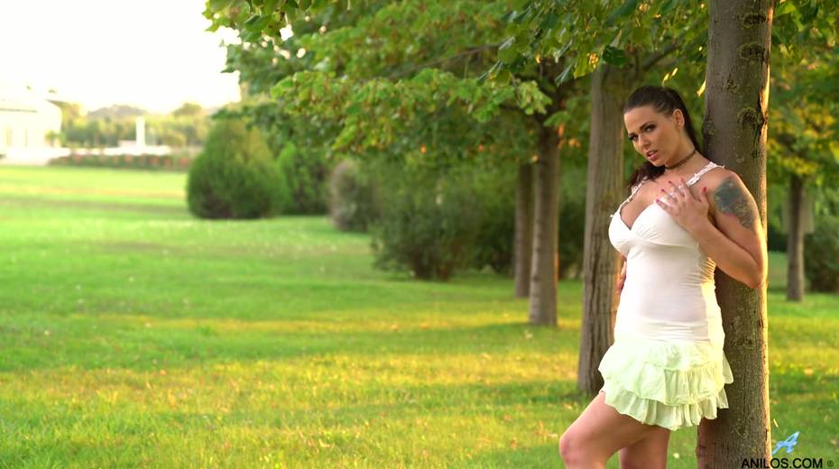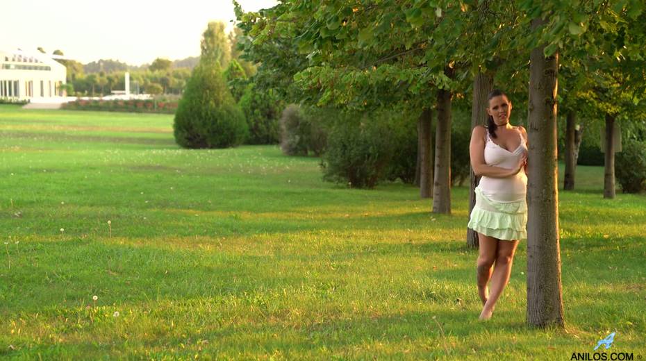 Mouth watering chubby milf Simony Diamond gets naked in the garden
