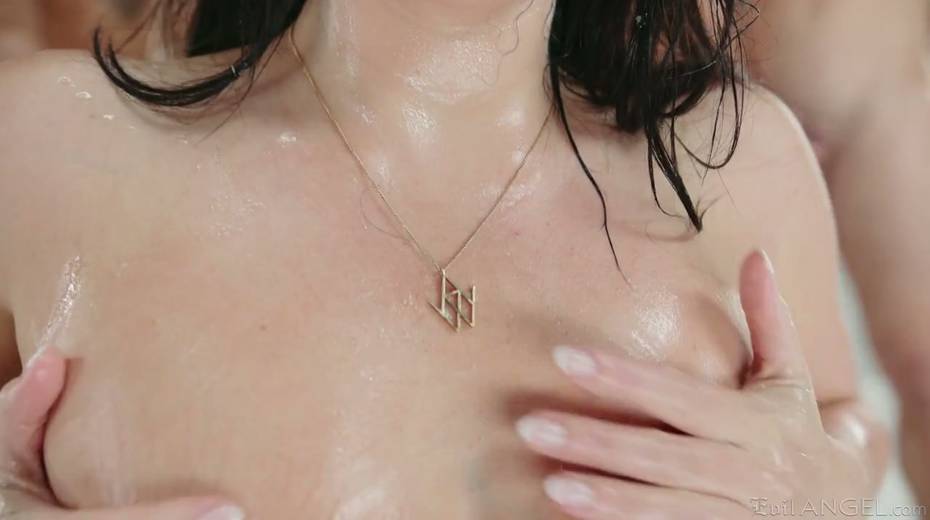 Mega juggy bitch Angela White takes part in crazy blowbang scene