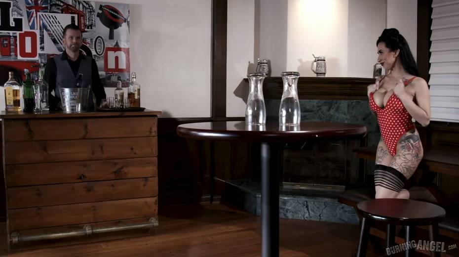 Ample breasted tattooed chick Lily Lane seduces handsome bartender
