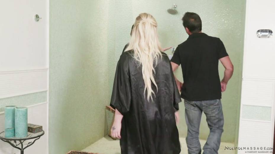 Masseuse Bailey Brooke and her friend serve one elder guy at the highest level