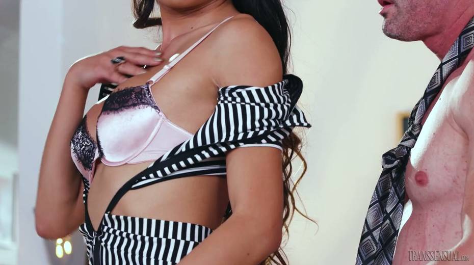Attractive shemale Venus Lux fucks anus and throat of her new BF
