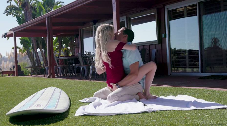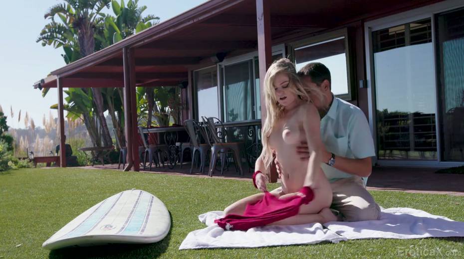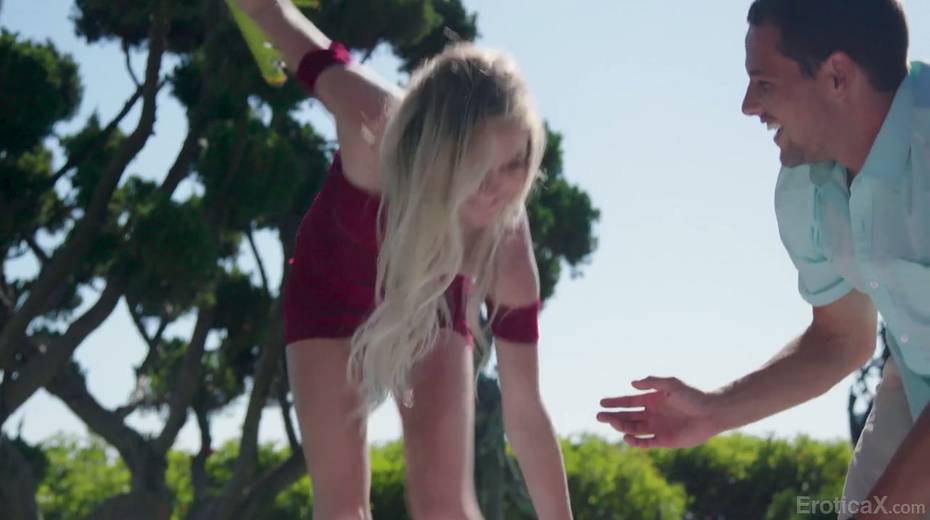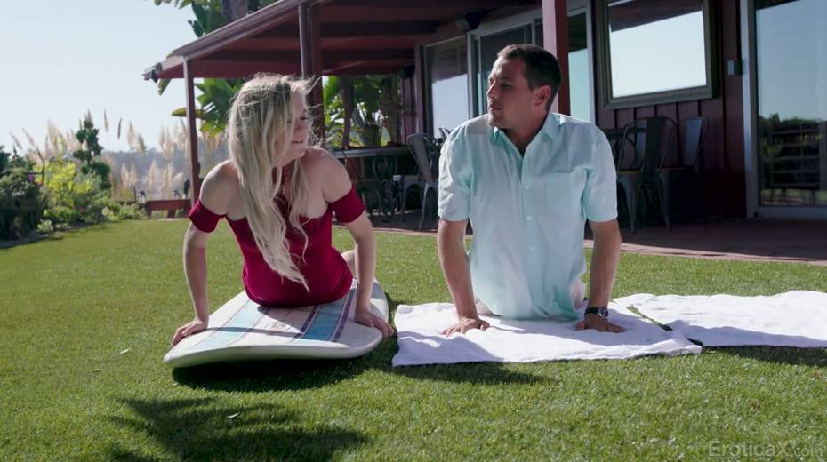 Yoga instructor fucks beautiful blonde Chloe Foster on the lawn