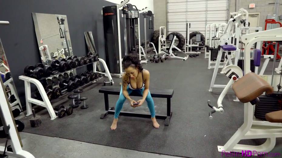 Whorish babe Amia Miley takes a big in her mouth and pussy at the gym