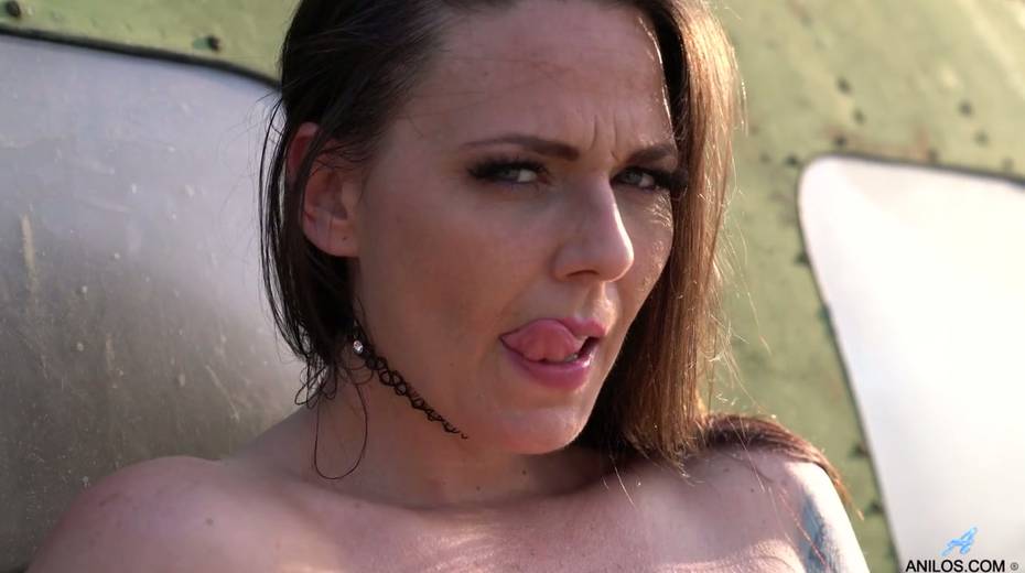 Busty babe Simony Diamond is fingering her yummy pussy outdoor