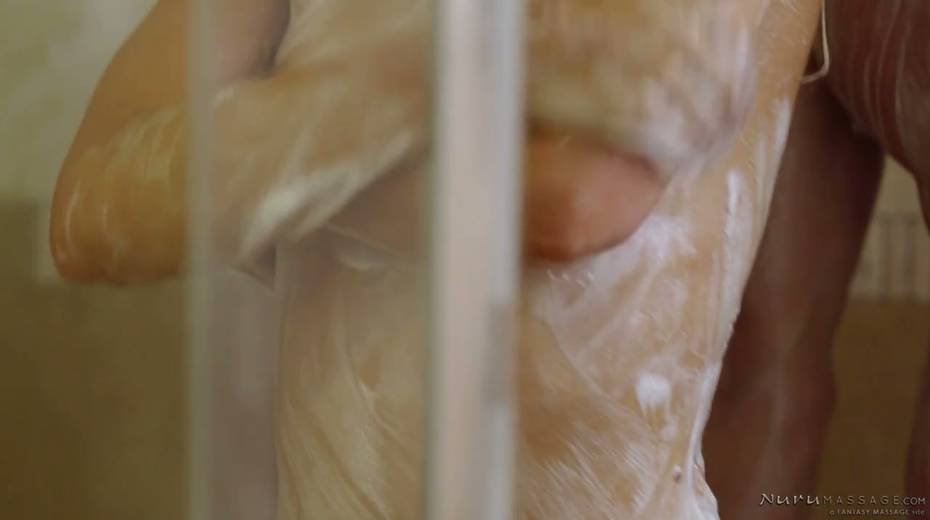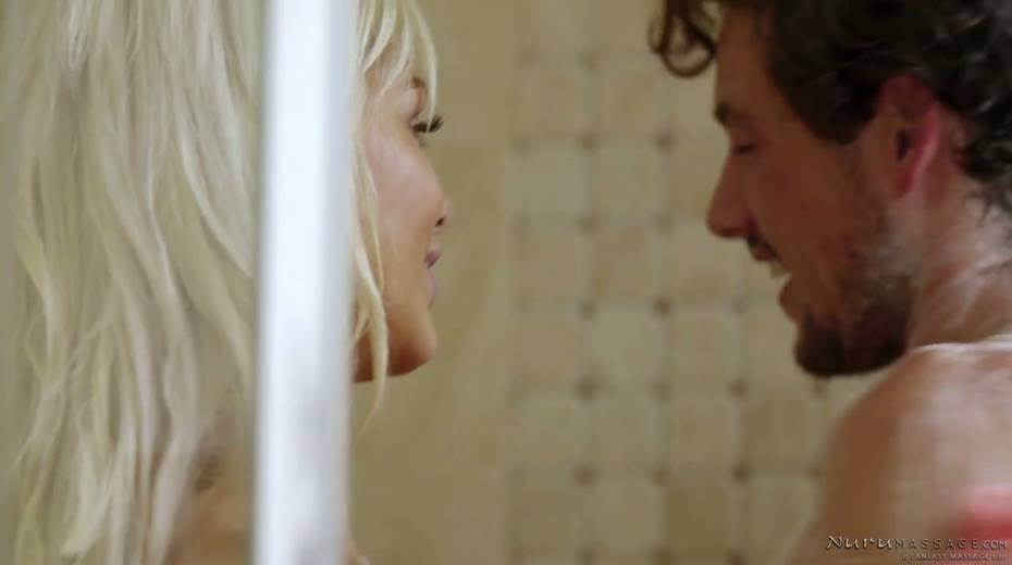 Charming petite blonde Elsa Jean gives a great nuru massage and gets laid