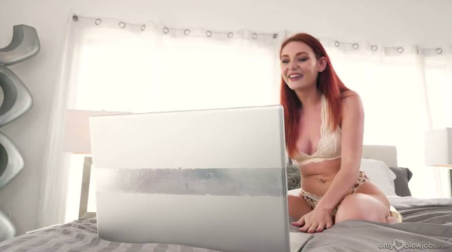Red haired webcam hottie Lacy Lennon gives a deepthroat blowjob