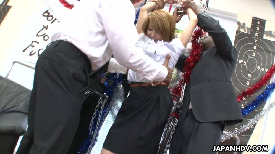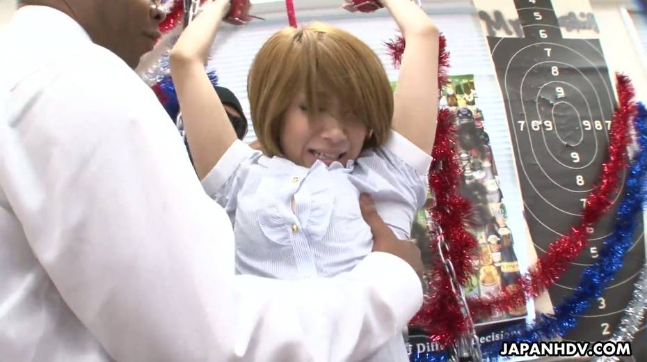 Three black dudes fuck Japanese co-worker Yuka Sawakita with crazy vibrators