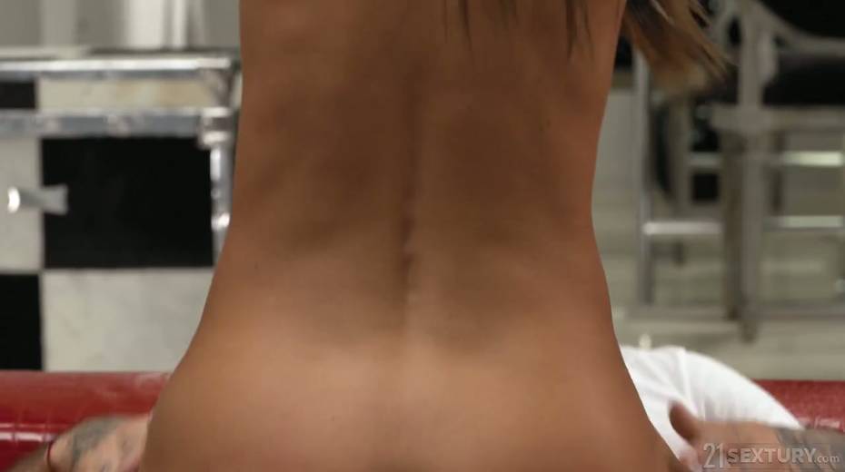 Beautiful babe Tina Kay takes a thick cock in her mouth and anal hole
