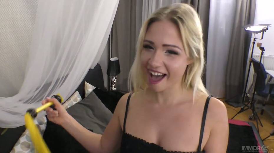 Luscious blonde Gabi Gold and her captivating big bouncing boobies