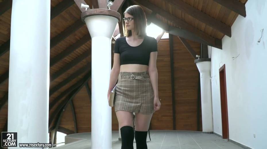 Nerdy chick in glasses Lexy Gold enjoys her first anal quest