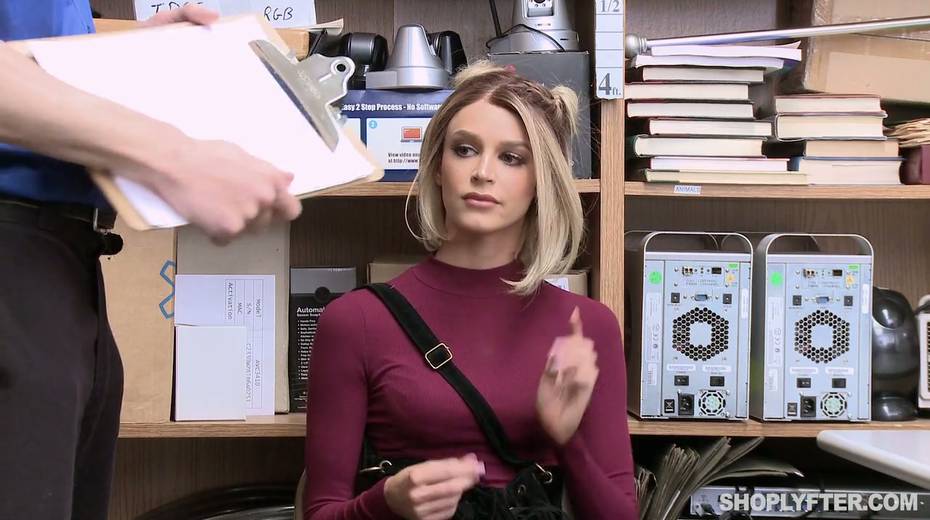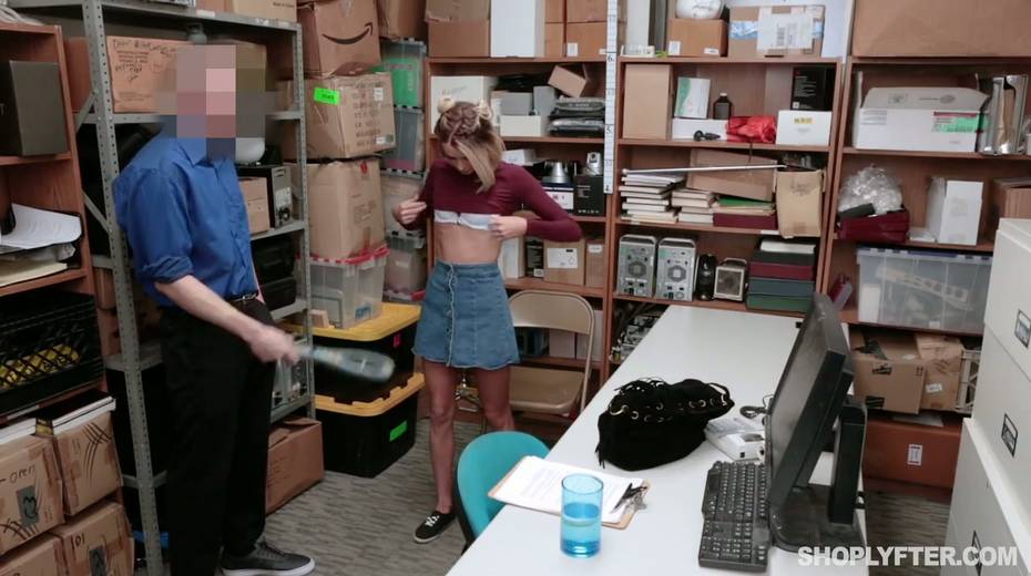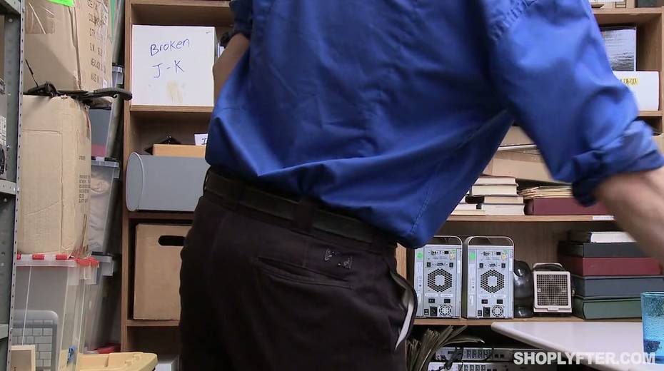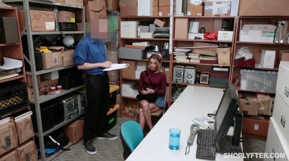 Shoplifting chick Emma Hix gets her pussy fucked in the back room