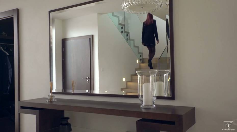 Leggy red haired babe Paula gives a good blowjob and gets doggy fucked