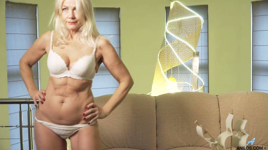 Beautiful and sexy granny Sylvie is masturbating her wrinkled pussy