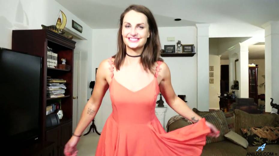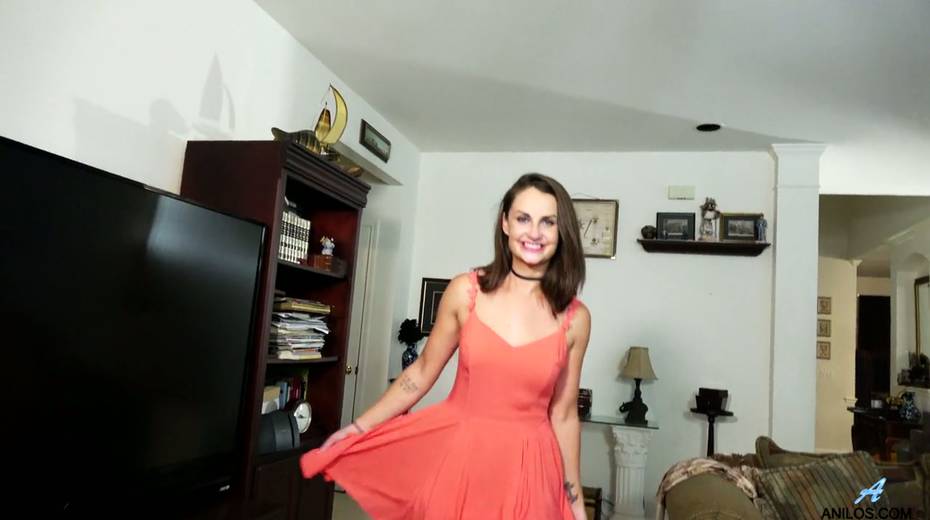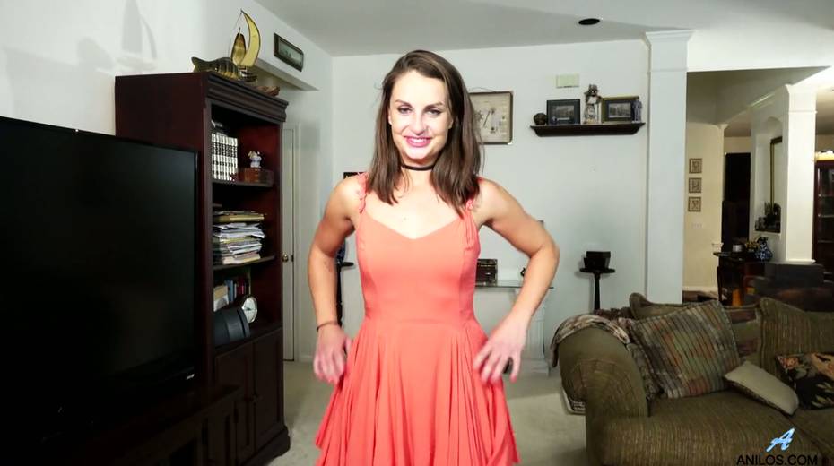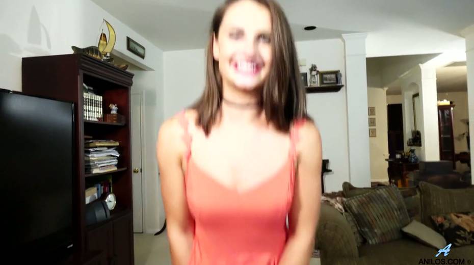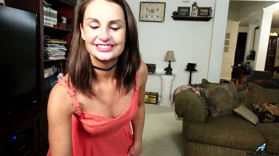 Cute brunette Alice Potts gets naked and masturbates muff spreading legs wide open