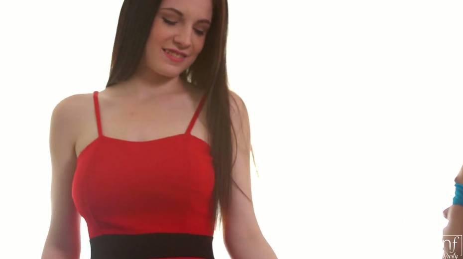 Busty young brunette Angel Princess gives a blowjob to blind folded boyfriend