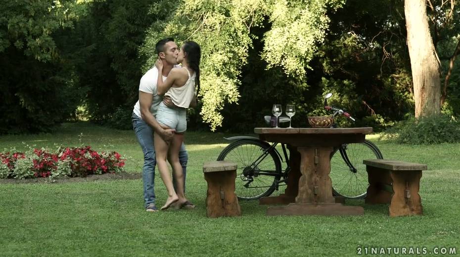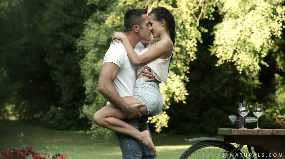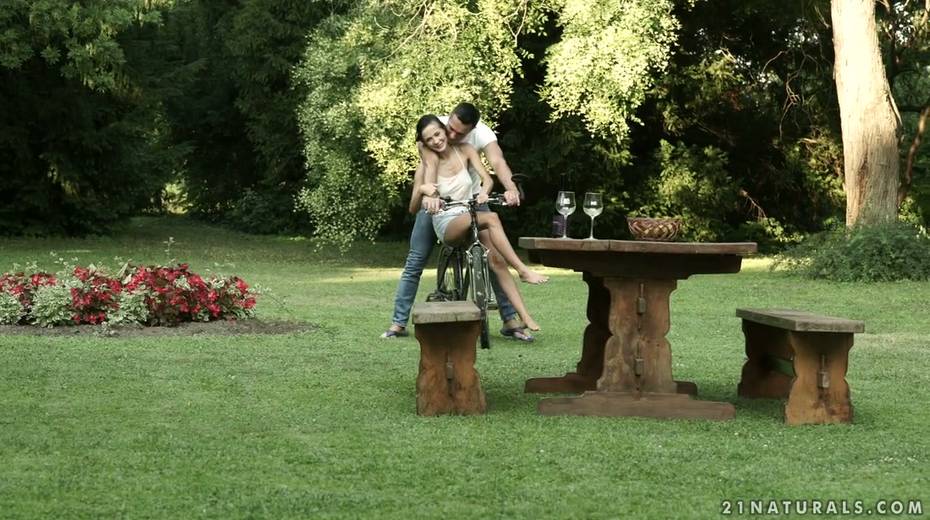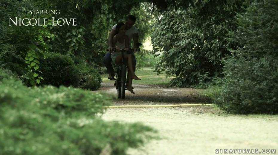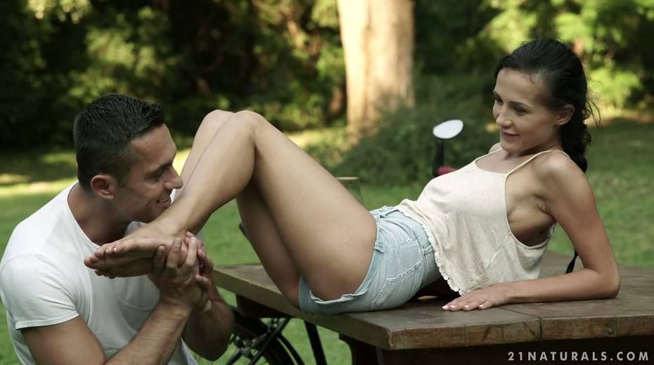 Leggy babe Nicole Love gives a footjob and gets nailed in the garden