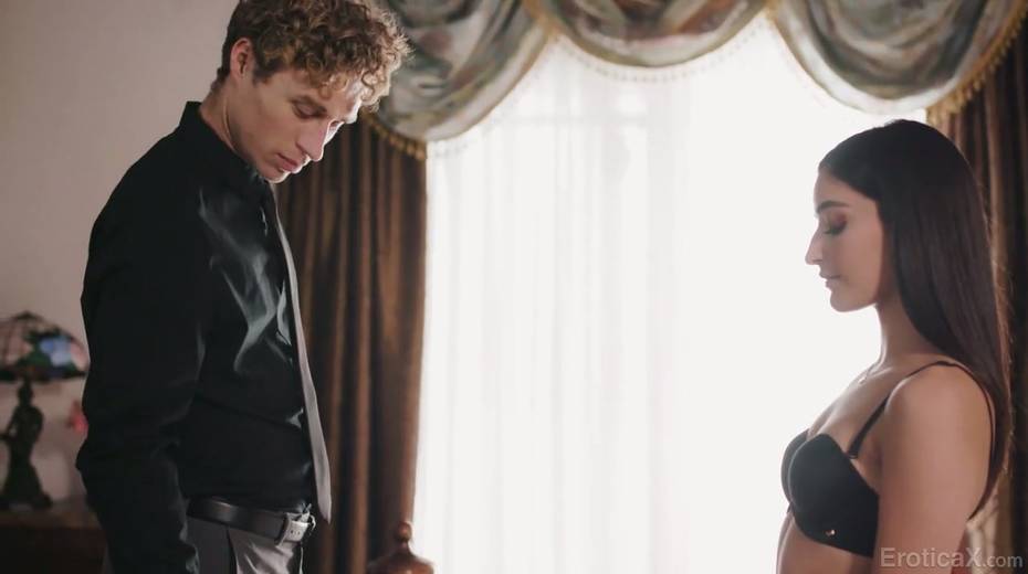 Cuffed babe Emily Willis is making love with her handsome and insatiable boyfriend