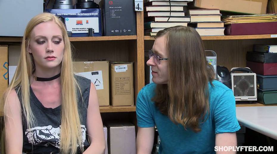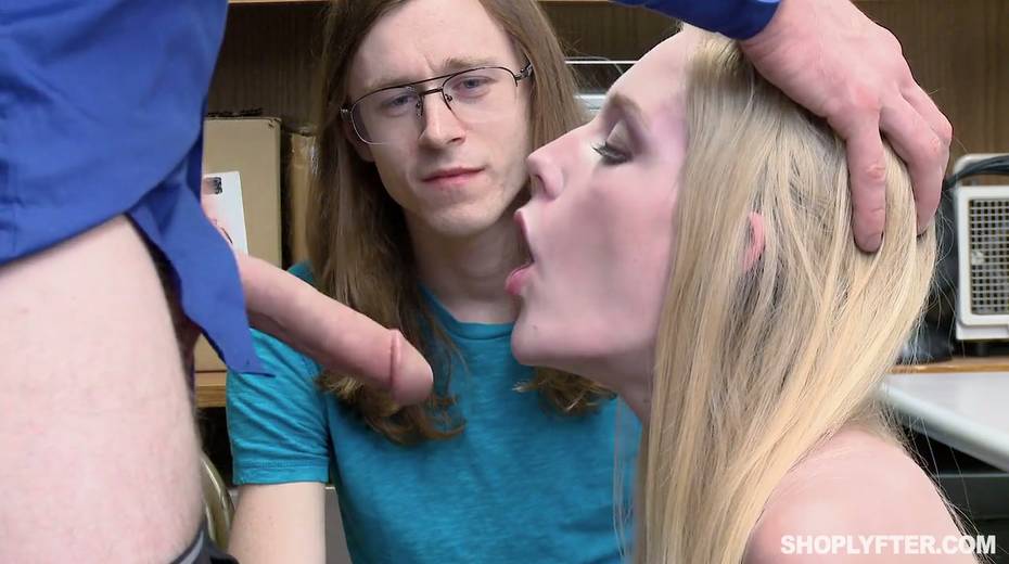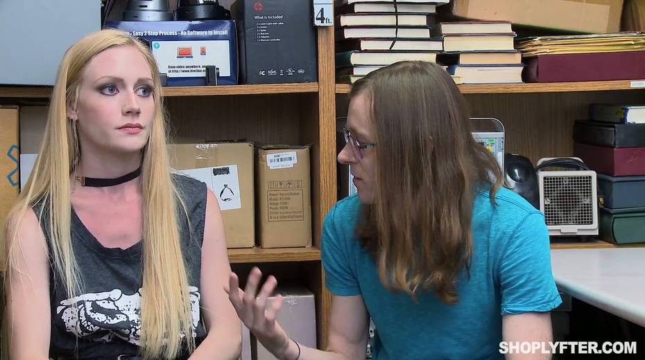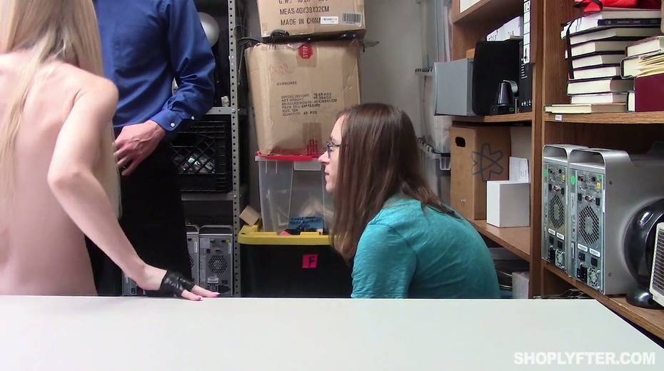 Shoplifting chick Emma Starletto gets punished on front of her girlfriend