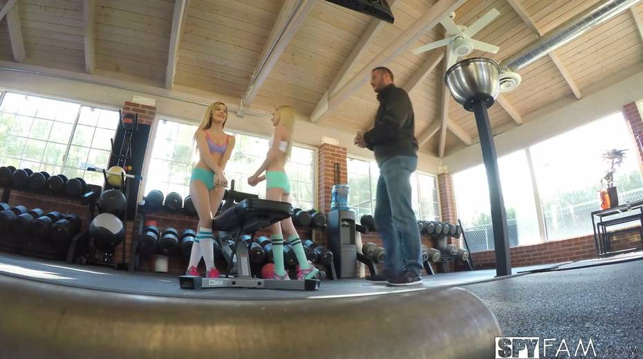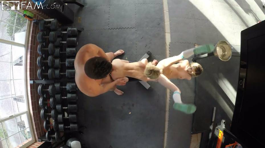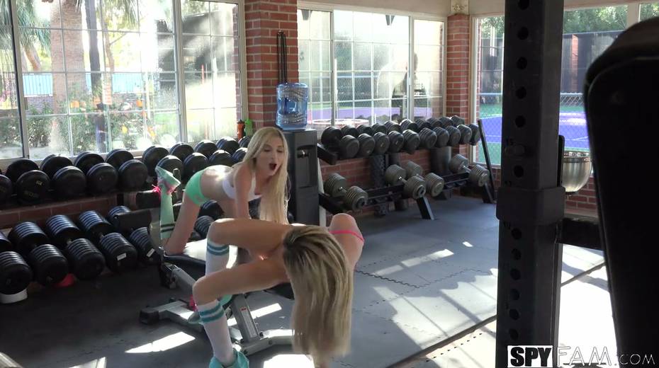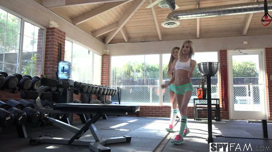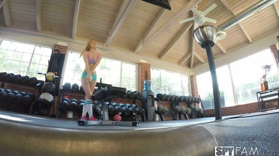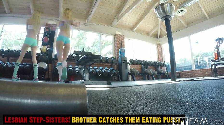 Stepbrother caught petite blonde Piper Perri eating pussy at the gym
