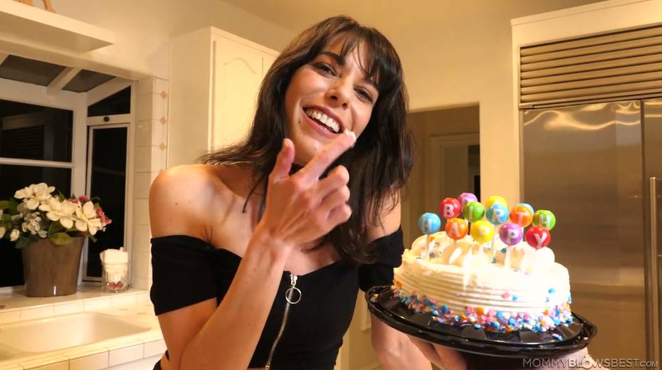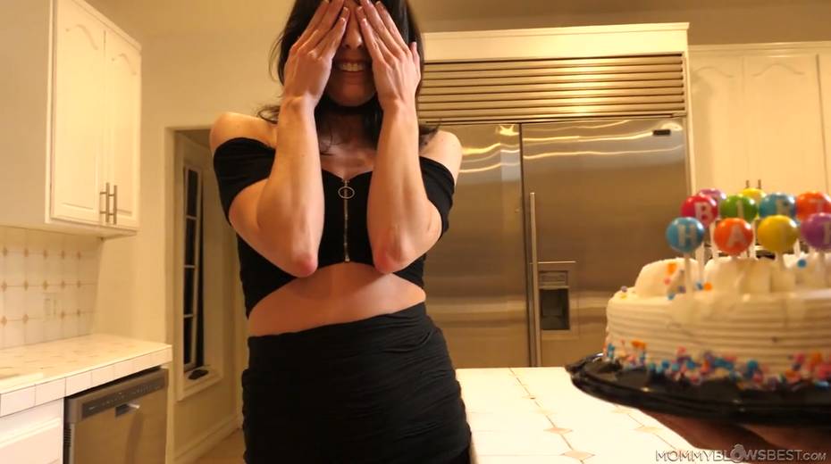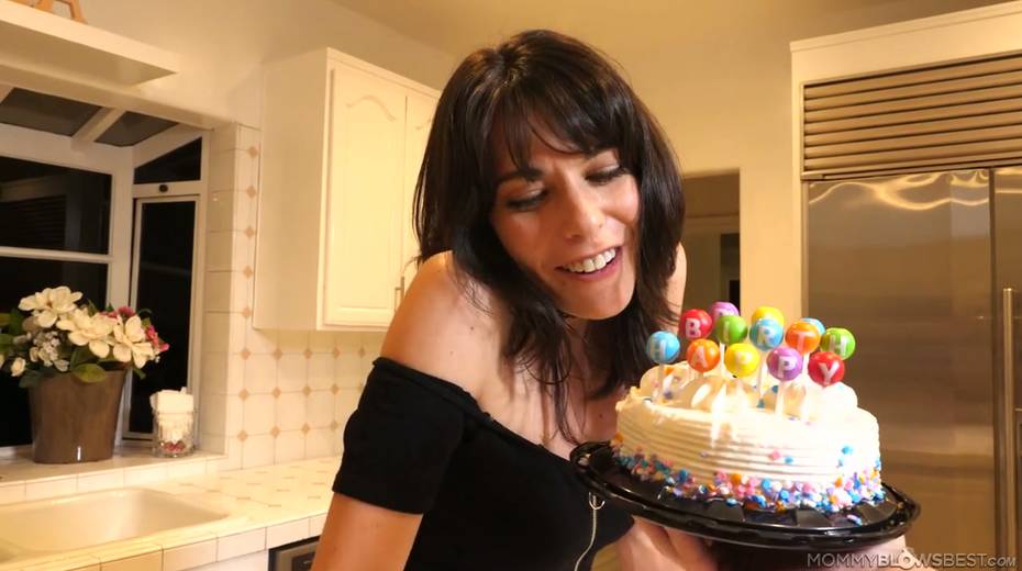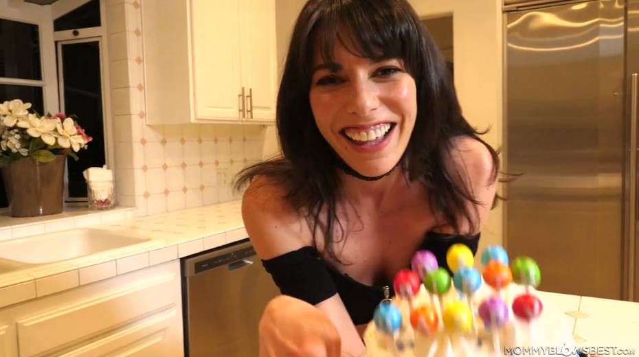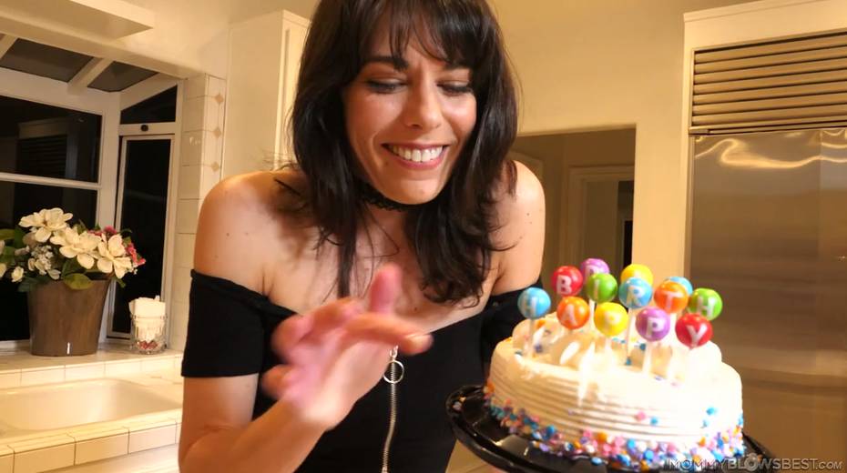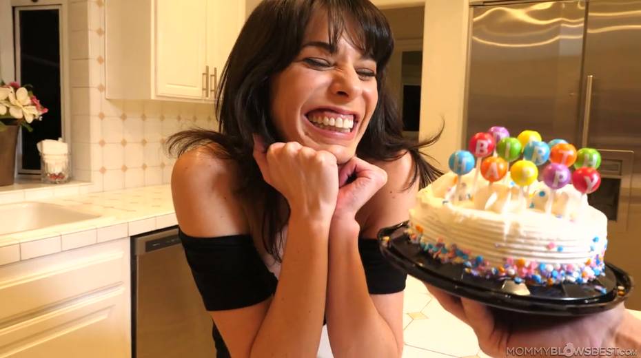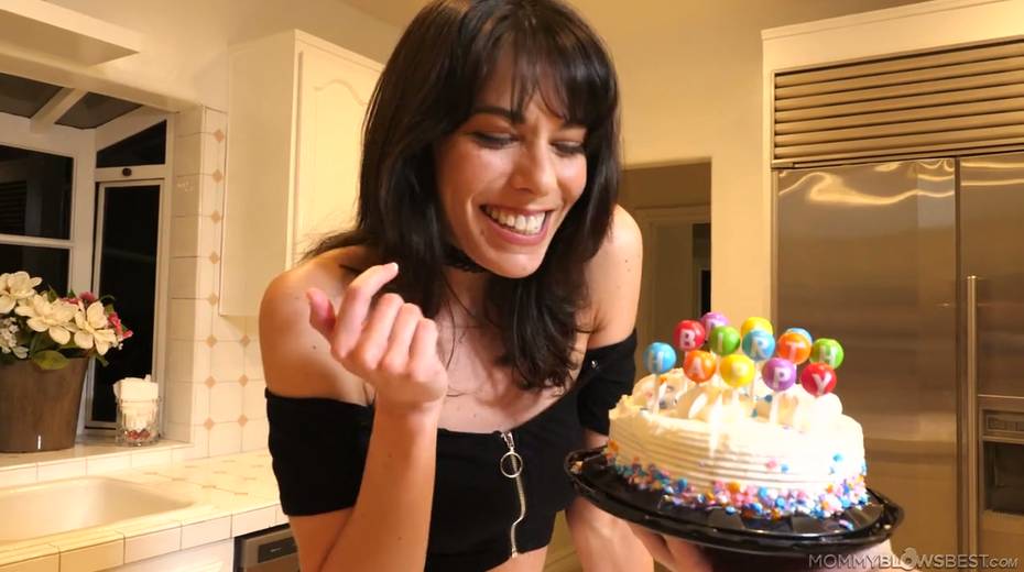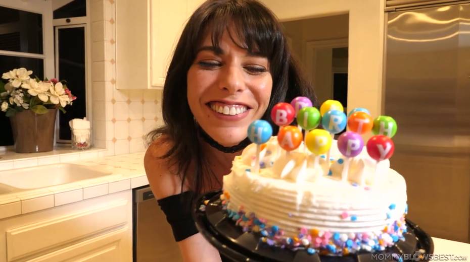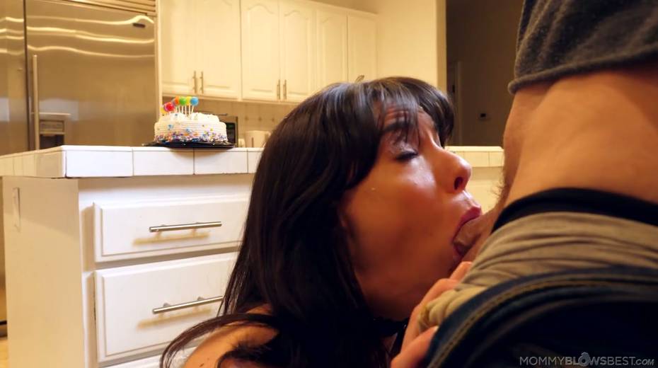 Birthday girl Lexi Foxy gives a great blowjob standing on her knees