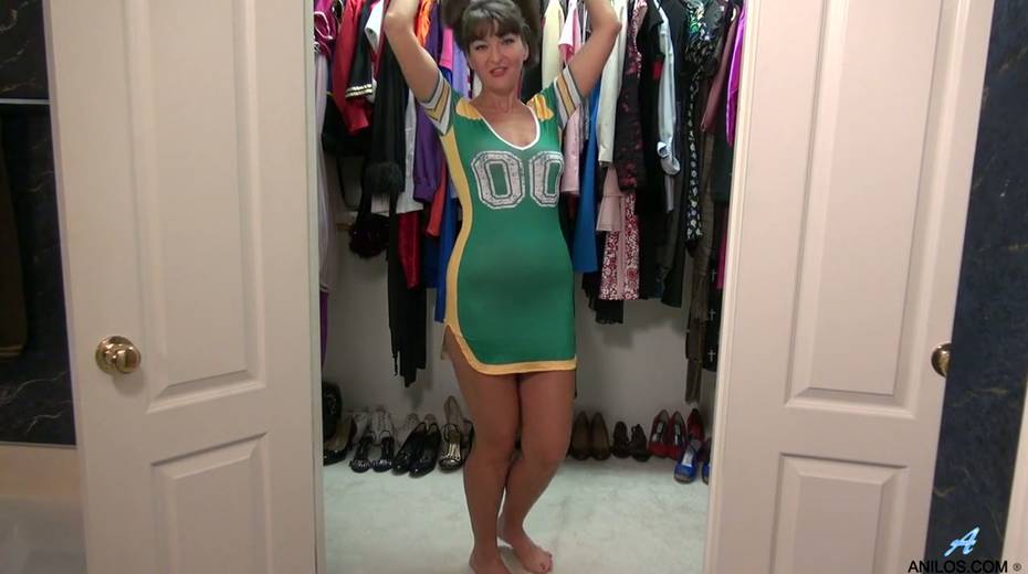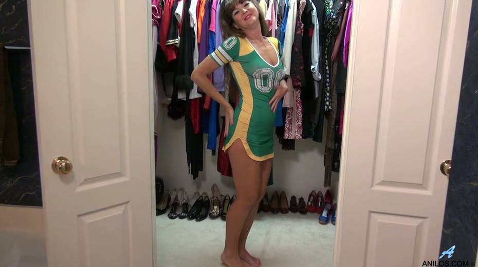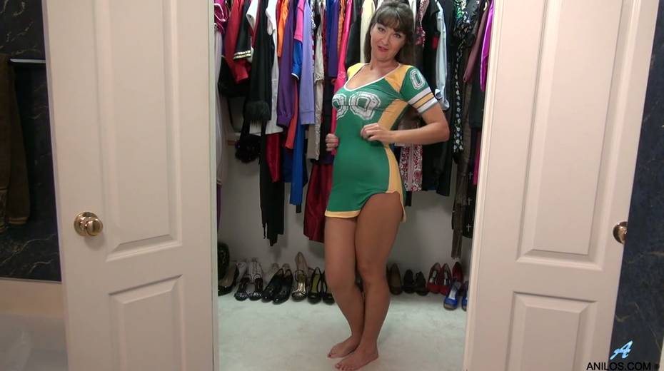 Old whore in cheerleader uniform Belinda Brush masturbates wet cunt