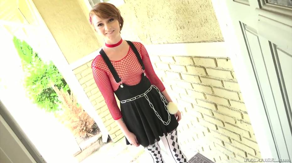 Naughty girl Lucy Valentine hooks up with one bad guy with massive dick