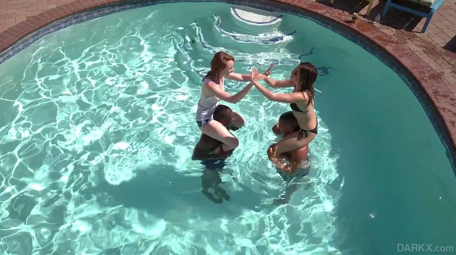 Two black fellows fuck Jane Wilde and her nasty GF by the poolside